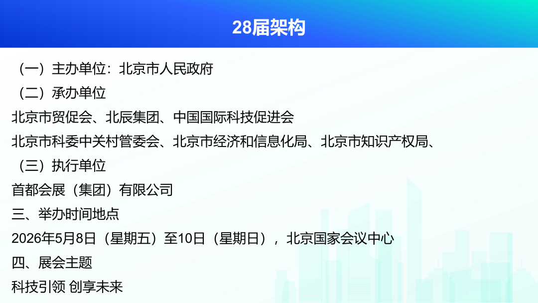双方同意,在2026年5月召开的第28届中国北京国际科技产业博览会期间,由中国国际科技促进会负责协调统筹本届展会的论坛环节,包括开幕式大会、闭门学术会议、产业发展论坛、产业专题研讨会议、技术创新与成果转化对接会、政策解读与招商会议、跨界融合创新论坛、国际区域交流合作会议。