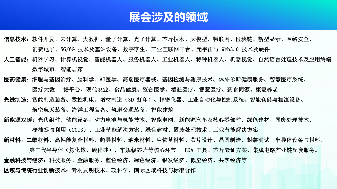 近年来,科博会已在光伏组件、储能设备、动力电池与氢能技术、智能电网、新能源汽车及核心零部件、绿色建材、固废处理技术、、绿色建材等新产业领域,二维材料、钙钛矿材料、纳米材料、晶圆制造、封装测试、半导体设备与材料等新材料领域,取得了重要成果,推动了相关领域的产业科技化、科技产业化。