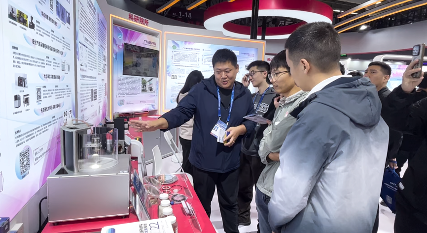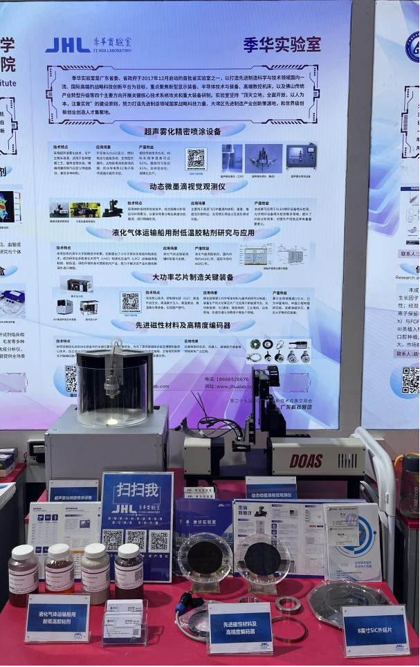本届高交会,季华实验室携超声雾化精密喷涂设备、动态微墨滴视觉观测仪、大功率芯片制造关键装备、先进磁性材料及高精度编码器、液化气体运输船用耐低温胶粘剂等创新成果参展,吸引众多专业观众驻足交流,现场气氛十分热烈。