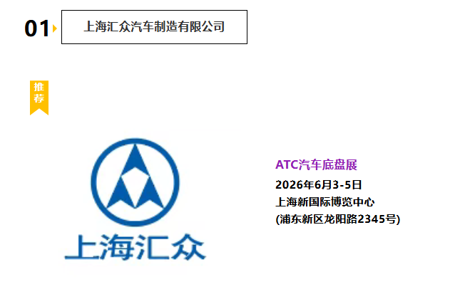 重磅展商集结!上海汇众、博世华域、同驭、京西、元丰、华申瑞利、炯熠、谋行、道陟等与您相约2026ATC上海汽车底盘展