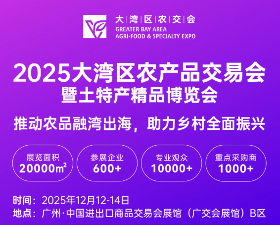 2025大湾区农产品交易会暨土特产精品博览会将于12月12-14日在广州广交会展馆B区举办。