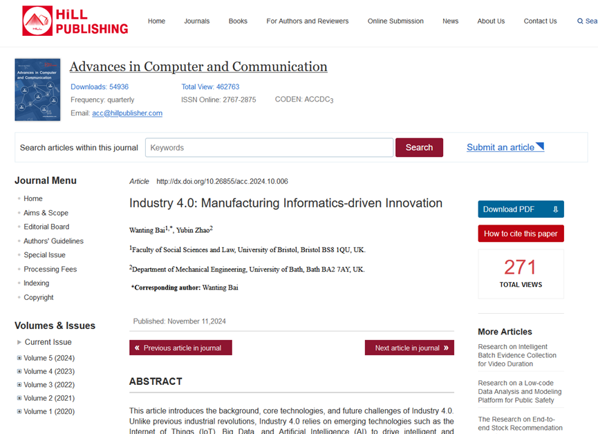 Wanting Bai, Yubin Zhao. (2024) Industry 4.0: Manufacturing Informatics-driven Innovation. Advances in Computer and Communication, 5(4), 233-236.