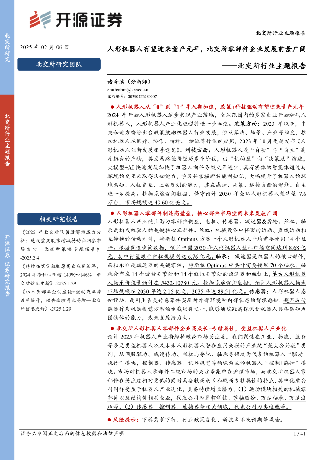 以上就是关于2025年人形机器人行业的分析。随着政策支持和科技进步,人形机器人行业迎来了量产元年,市场规模和应用前景广阔。零部件制造具有高壁垒,核心部件市场空间广阔。北交所零部件企业具备较高成长和较高专精属性,优质公司同样受益于机器人产业进化,具备持续增长潜力。未来,人形机器人行业将继续保持高速发展,推动各领域的应用和产业链的完善。