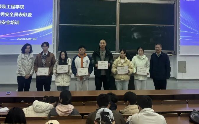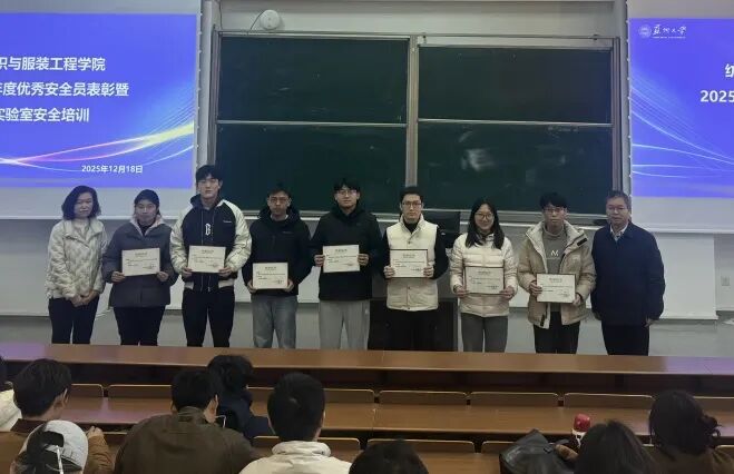 为进一步筑牢实验室安全防线,强化师生安全责任意识,充分发挥安全员在实验室安全管理中的关键作用,12月18日学院开展2025年度优秀安全员表彰暨实验室安全培训工作。学院党委书记肖甫青、学院专职安全员银华、学院辅导员李雪、研究生安全员和即将进入实验室的研一学生和本科生参加培训,培训由现代丝绸国家工程实验室副主任刘欣亮主持。