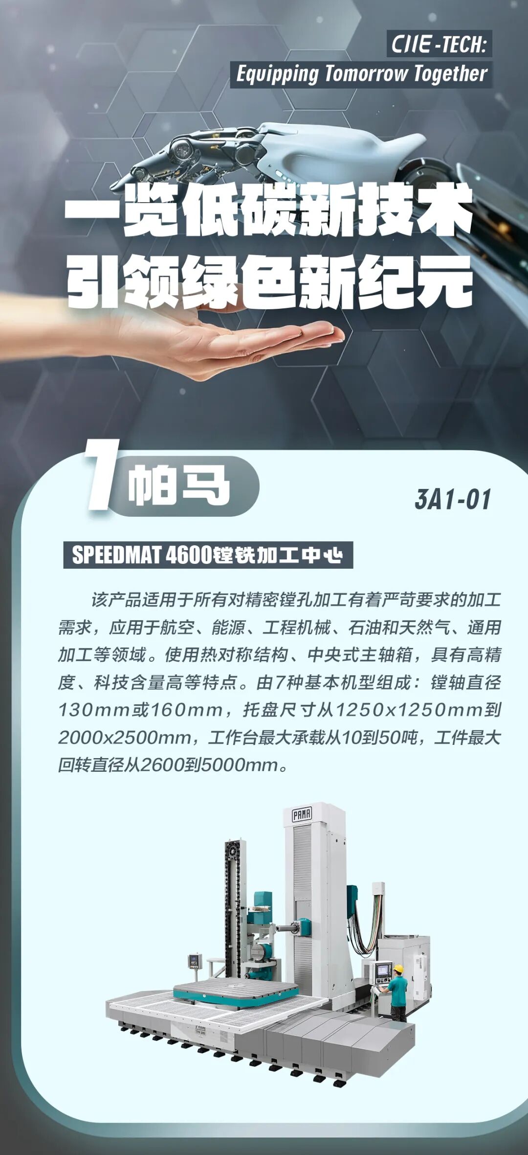 第八届进博会技术装备展区以“一起装备未来”(Equipping Tomorrow Together)为主题,聚焦数字工业自动化、能源低碳及环保技术、集成电路、人工智能、新材料五大专区,展示全球高端装备和前沿技术。