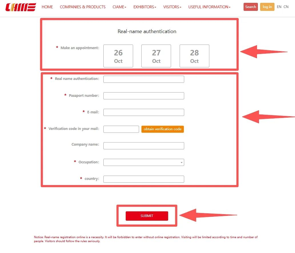 3、点击图标进入预登记界面,进行手机注册后,选择预约日程(可多选),并填写实名信息;