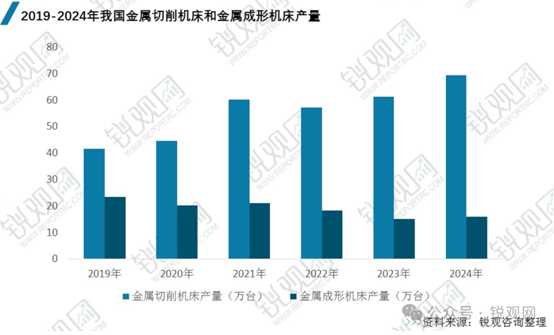 进入2024年,经济形势依旧低迷,消费市场未能达到预期。在此严峻背景下,国家果断推出一系列扶持政策,其中设备以旧换新政策成效显著,有力地提振了市场信心,缓解了行业下滑态势。值得关注的是,2024年10-12月,制造业PMI连续三个月坚守在临界点之上,设备更新投资呈现出较快增长的良好态势。这一积极变化对机床工具行业产生了明显的拉动效应,使得主机产品在产需两端均呈现出增长的喜人局面。另外,依据国家统计局数据,规模以上企业的金属切削机床和金属成形机床产量,自2024年7月起,陆续步入增长通道。政策的组合效应如同强劲的东风,助力机床行业产量开启增长新篇,为行业发展注入了新的活力与希望。
