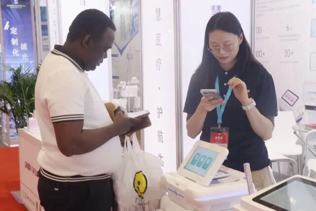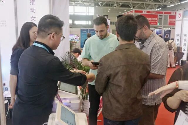 开展首日便迎来客流高峰,B 端经销商、医疗机构采购负责人、零售端意向客户,以及来自欧美、韩国等国家的国际友人齐聚展位,国内客户与国际访客的叠加,让展位热度直接拉满。