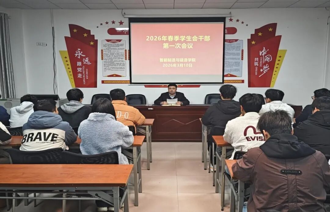 为进一步加强学生会干部队伍建设,明确新学期工作目标,切实发挥学生会“服务学生、联系师生”的桥梁纽带作用。2026年3月10日,智能制造与建造学院在仙女湖校区B栋104会议室召开2026年春季学生会干部第一次会议。本次会议由党总支书记范向红主持,全体学生会干部参加。