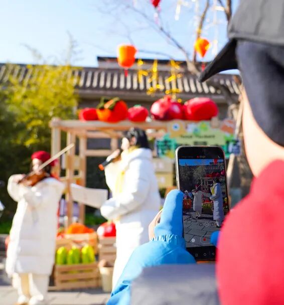 打卡队伍的身影穿梭在古建之间
