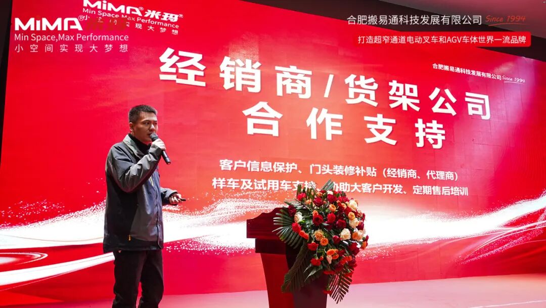 合肥搬易通(MiMA)国内销售副总任飞在讲话中表示,西安营销服务中心可不是简单的 “销售点”,而是集销售与服务于一体的 “综合服务站”!在这里,西安及周边企业能享受到从产品规划、定制化物料搬运方案,到售后运维的全链条服务 —— 不管是复杂的仓储场景,还是特殊的搬运需求,MiMA 米玛都能靠技术实力搞定。
