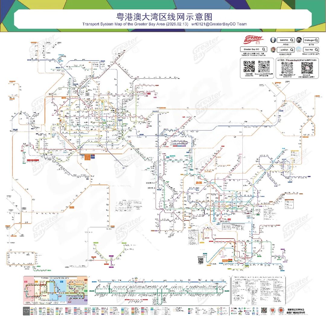 至今,广州地铁集团在珠三角运营轨道交通长度约为1232.2km,深圳地铁运营约622km,港铁运营约321km!如此多拥有轨道交通的城市,使粤港澳大湾区铁路成网,出行更便捷。每一次线网图更新背后都是数以千计的路径绘制与信息核实。感谢大家一直以来的支持。