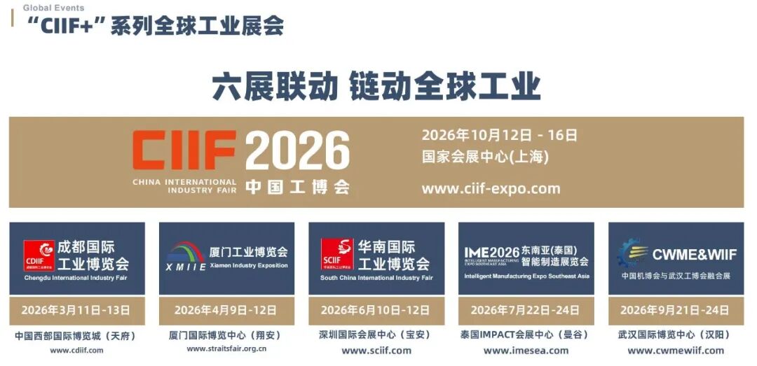 CIIF第26届中国国际工业博览会将于2026年10月12-16日在国家会展中心(上海)举办,规划展览面积超过30万平方米,9大专业展:MWCS数控机床与金属加工展,IAS工业自动化展,RS机器人展,GLCS绿色低碳与工业节能配套展,ICTS工业新一代信息技术与应用展(FTIS空天陆装备展),ES智慧能源展,STIS科技创新展和NMIS新材料产业展,届时将有数十场高质量的高峰论坛及活动同期举行。作为中国影响力、规模化和高水平的国际工业品牌展,工业领域智能制造解决方案、人工智能技术应用集中的展示、交易平台,中国工博会见证了中国工业的崛起,助力中国工业创新发展和开放合作,助推中国工业与全球产业链的交流、交融、交易。