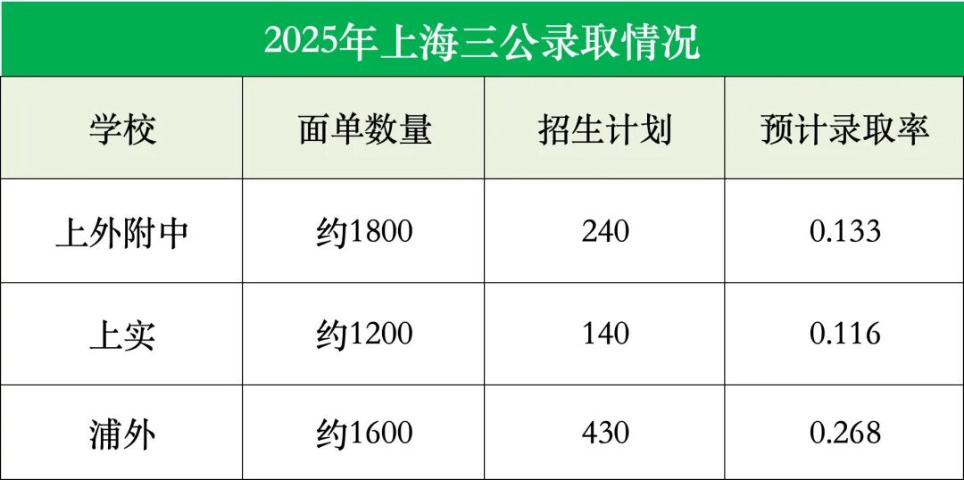作为沪上“神仙学校”,每年招生季,三公的竞争都格外激烈!2025年,上海三公学校共发放面单约4600张,最终录取930人,拿到面单的同学录取率约为20%。