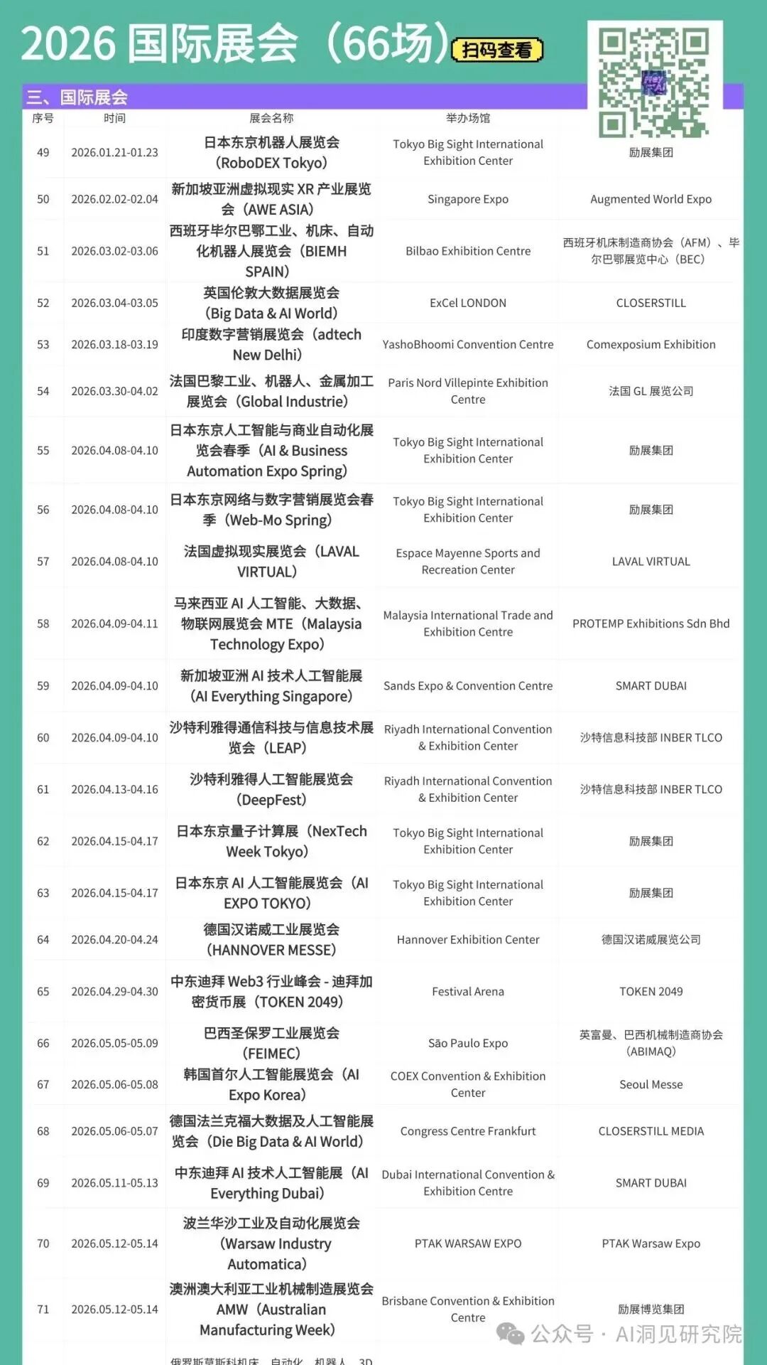 ● 2026 AI科技展会日历——116场展会(知识库权限)