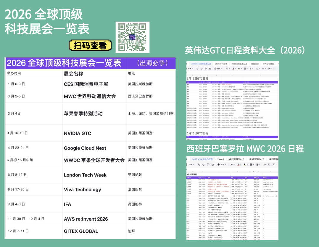 👉 查看完整《 116场2026全球科技展会/大事件日历》