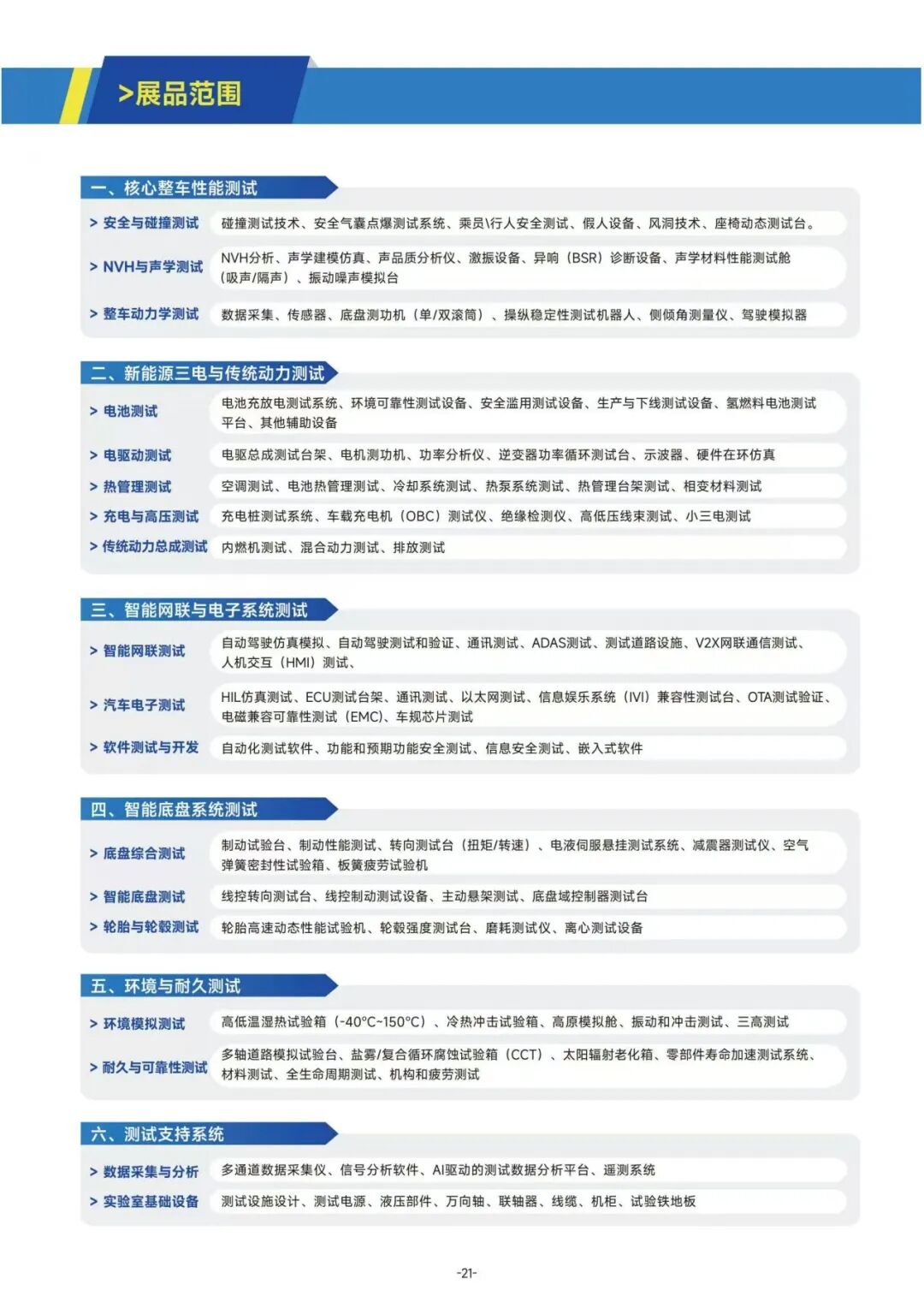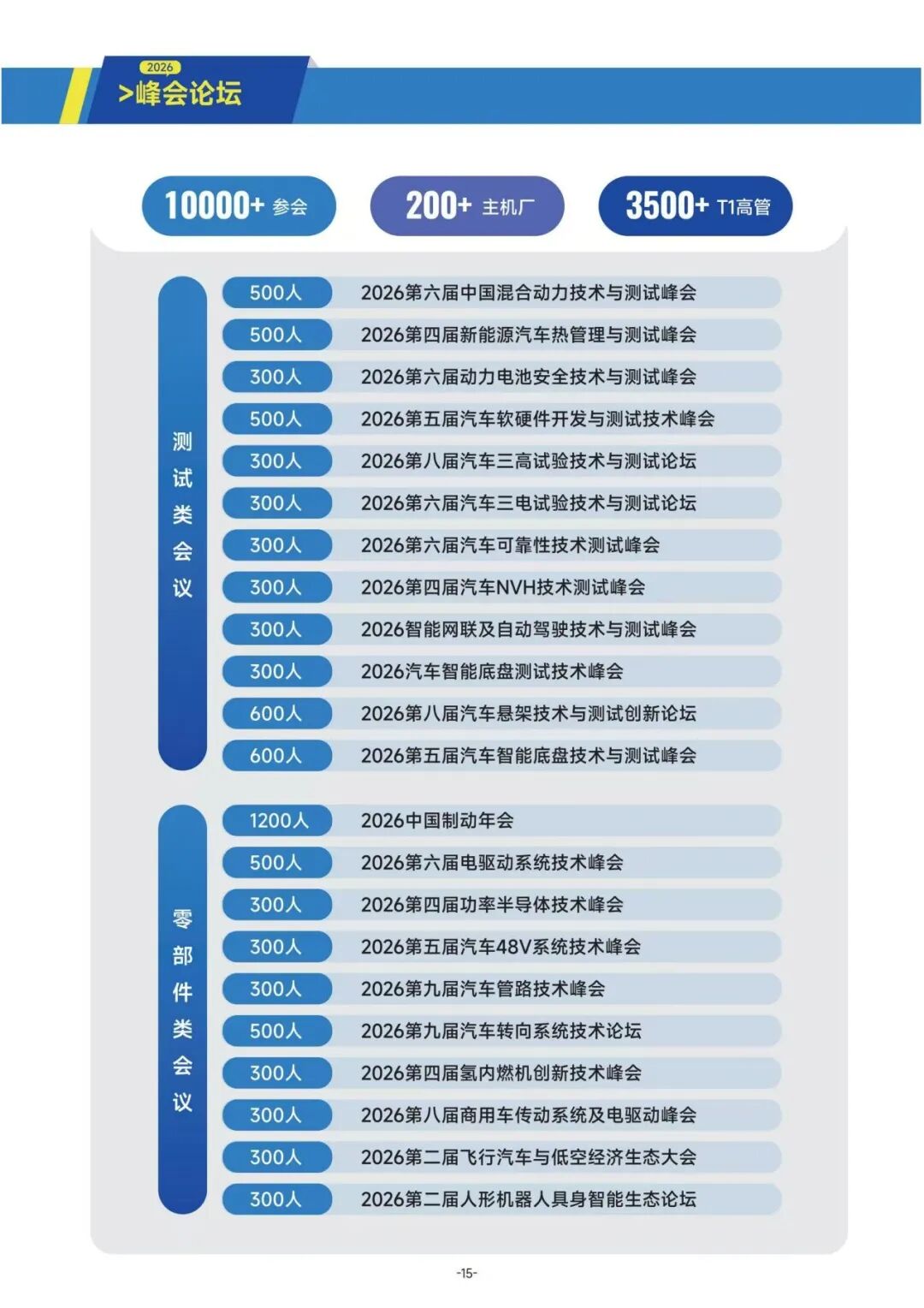 2026汽车测试展将系统将全面展示整车、汽车零部件开发的各种技术和服务,重点聚焦汽车电子测试、软件开发测试、新能源三电测试、可靠性测试、耐久性测试等技术热点,延续“展览+高端峰会”双引擎模式,展会预计汇聚300余家汽车测试全产业链企业参展,配套举办5大技术峰会,邀请150余位行业领袖深度分享,探讨150多项行业及技术热点话题,吸引2000余名技术嘉宾及20000余名专业观众共赴盛会。