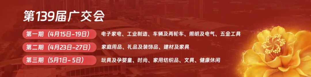 第一期时间:2026年4月15-19日(电子家电、工业制造、车辆及两轮车、照明及电气、五金工具)