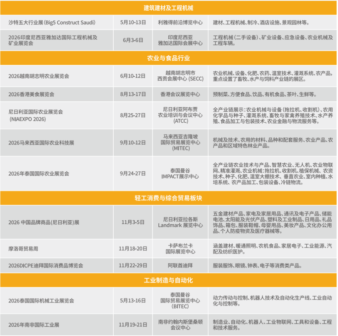 驭势而行,赋能全球。为了积极响应国家支持企业出海的政策导向,把握时代红利,并在2026年切实带动更多企业开拓对非市场,湖南省中非经贸合作促进研究会展览中心正式发布《展览中心2026年境外展展览计划》,助力合作伙伴在变革中精准卡位,共同驱动“中国制造”在全球版图闪耀!