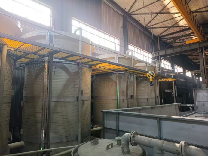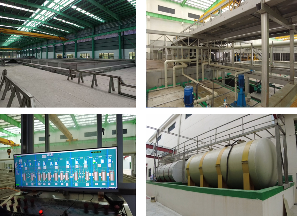 不锈钢酸洗槽:不锈钢钢管密闭酸洗生产线,包括钢管酸洗槽设备,1套多级酸雾处理设备和废水集中池、沉淀池、净化整套设备、浓酸储酸罐。该系统为自动酸洗线,添加、控制等均由操作员在控制室控制。酸液都在管道中循环流转,操作人员无需直接接触有毒有害物质。