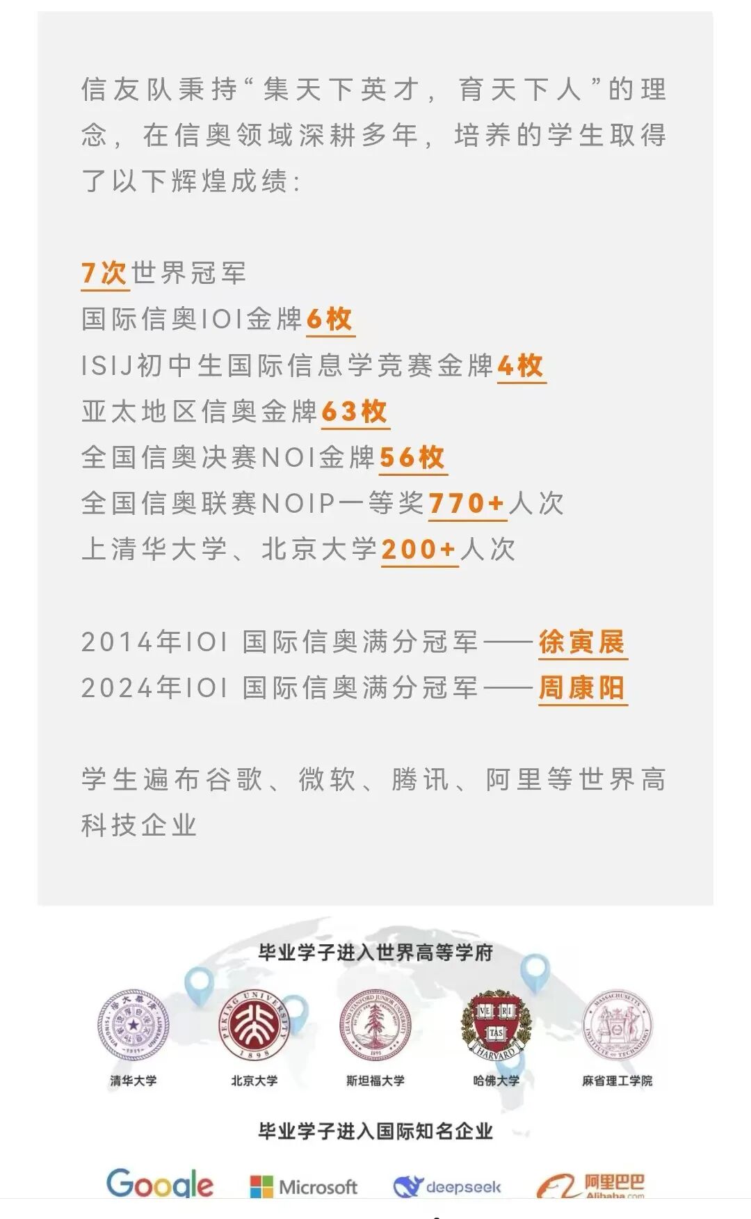 信友队——国内最早的信息学奥赛培训团队之一,成立 20 年来 成就斐然: