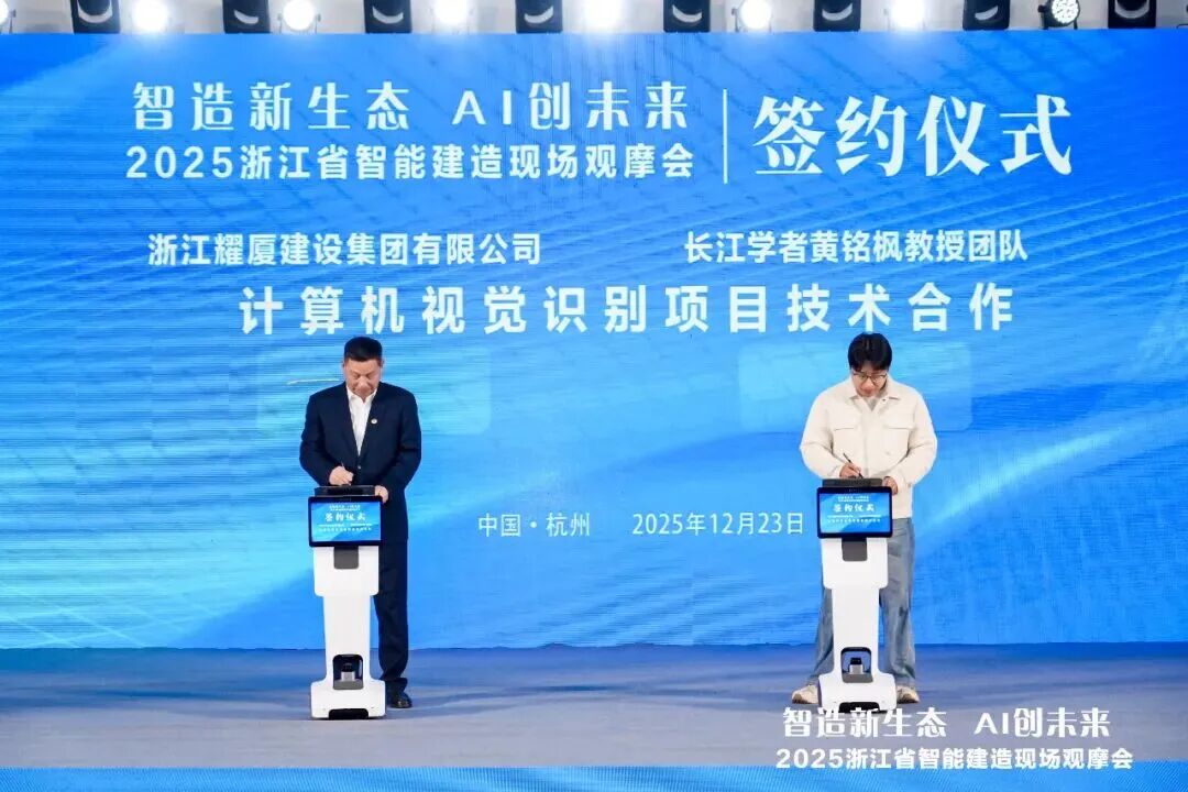 观摩会上,耀厦集团与浙大建工学院黄铭枫教授团队签订了视觉监测识别技术合作协议,共同打造全省“人工智能+建筑业”典型应用场景和示范标杆企业。