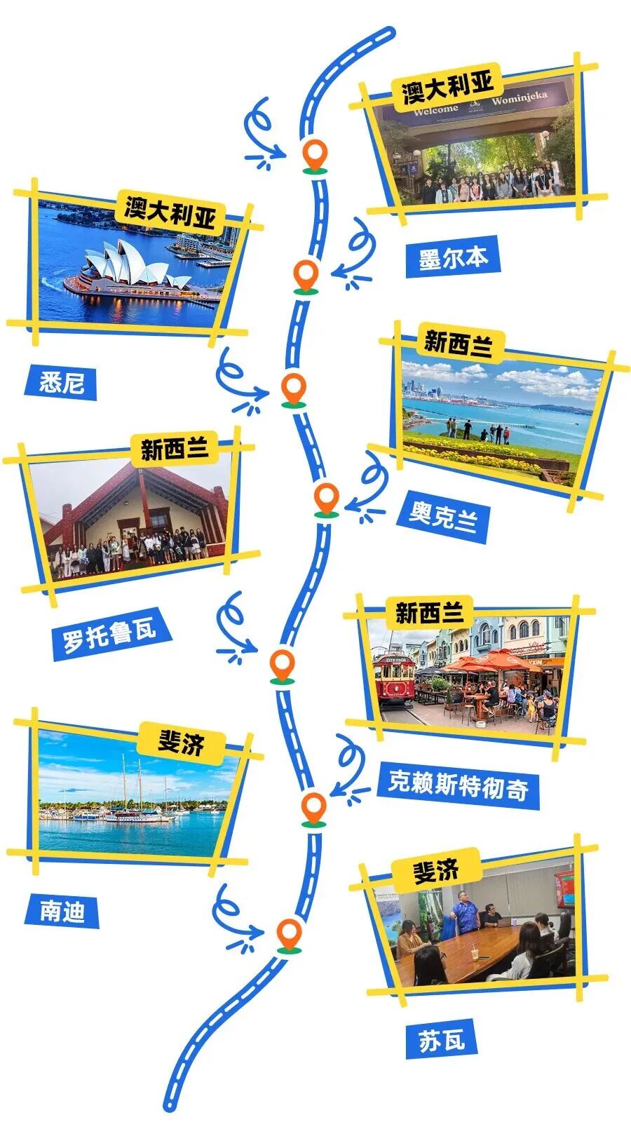 📍 南太平洋线:澳大利亚(悉尼、墨尔本)、新西兰(奥克兰、罗托鲁瓦)、斐济(苏瓦、楠迪)
