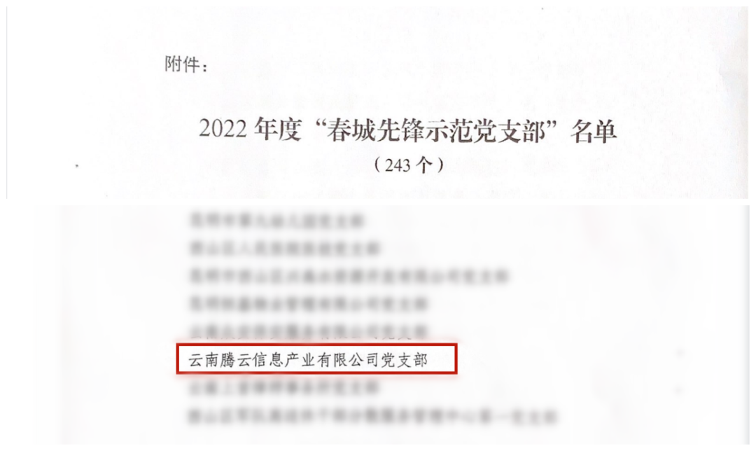为进一步巩固全市党支部标准化规范化建设成果,突出基层党组织的典型引路、示范引领、标杆带动作用,中共昆明市委组织部发布了关于命名2022年度“春城先锋示范党支部”的决定。云南腾云信息产业有限公司党支部进入命名对象名单。