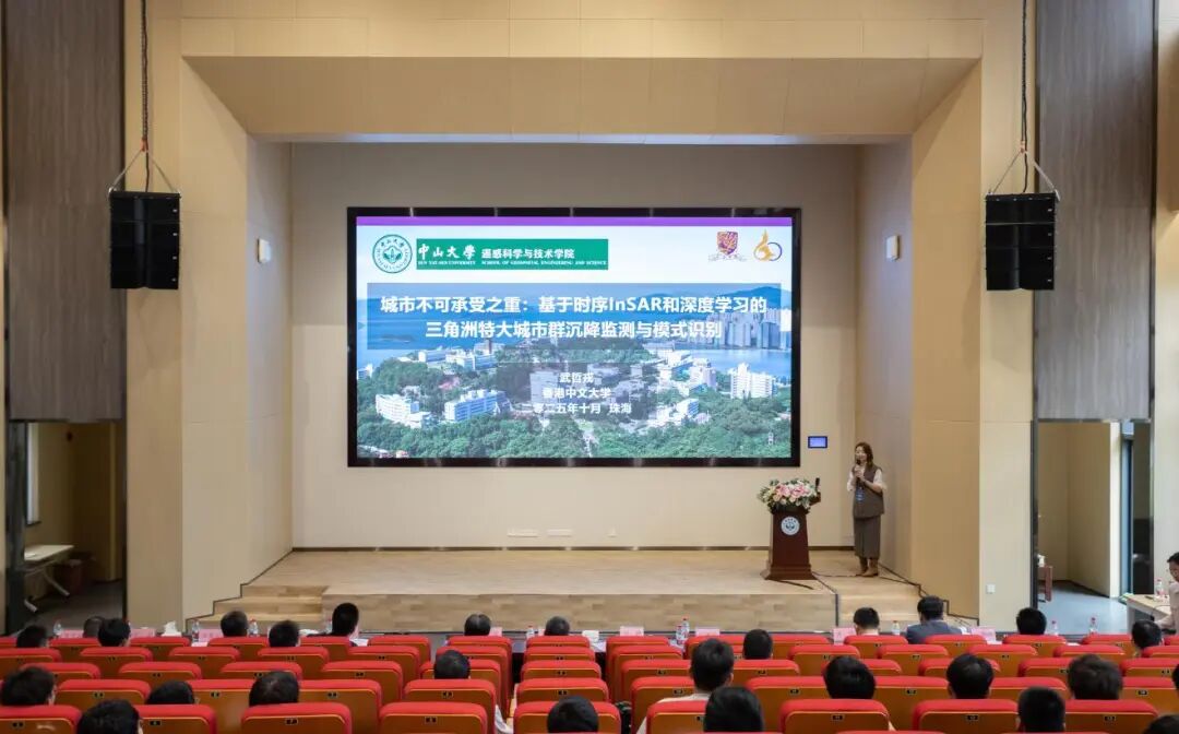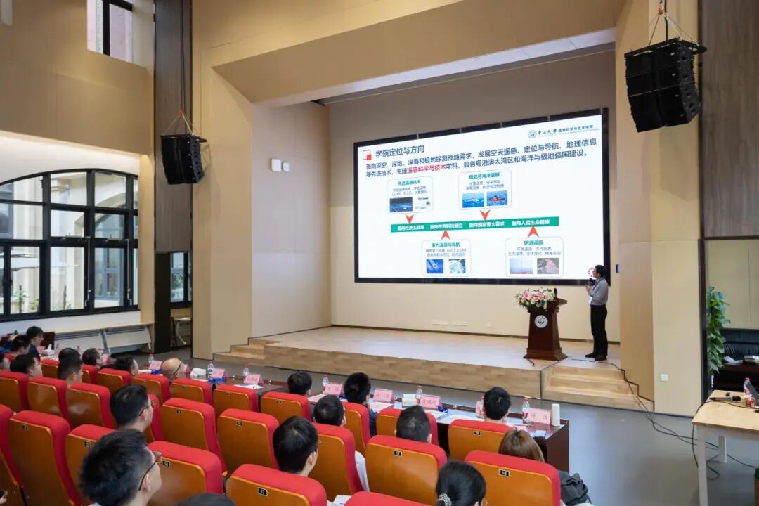 学院黄华兵副院长介绍了学院总体情况与建设成效。报告回顾了学院自2019年成立以来的发展历程,指出学院面向国家“深空深地深海和极地探测”前沿领域和大湾区建设需求,部署极地与海洋遥感、空天遥感与数智环境、先进遥感技术、重力遥感与导航四大研究方向,形成了一支特色鲜明的高质量师资队伍。