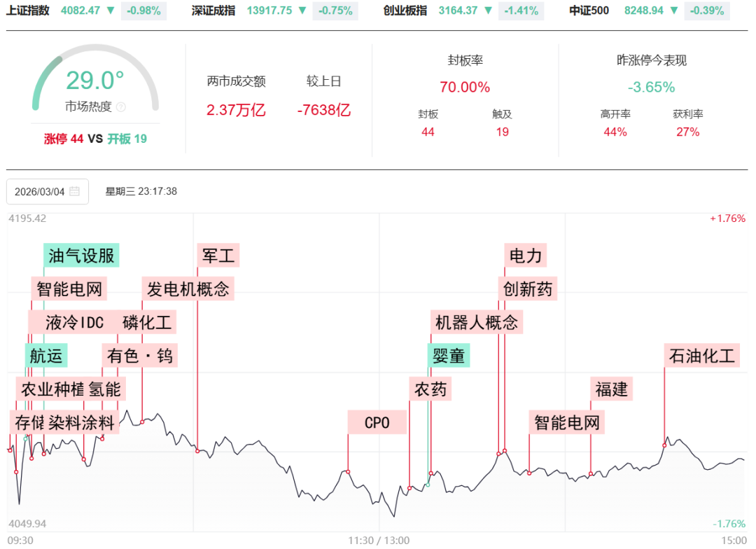 【国内商品期市夜盘多数下跌 低硫燃料油跌3.70%】财联社3月4日电,国内商品期市夜盘多数下跌,能源品跌幅居前,低硫燃料油跌3.70%;化工品多数下跌,甲醇跌3.14%;油脂油料全部下跌,棕榈油跌0.80%;黑色系涨幅居前,铁矿石涨1.87%;非金属建材涨跌参半,PVC涨0.80%;农副产品多数上涨,玉米淀粉涨0.33%。能源品方面,低硫燃料油(LU.INE)夜盘收盘下跌3.70%,LPG(PG.DCE)下跌3.33%,燃油(FU.SHF)下跌0.63%。化工品板块多数下跌,甲醇(MA.CZC)领跌3.14%,沥青(BU.SHF)下跌1.77%,乙二醇(EG.DCE)下跌0.88%,塑料(L.DCE)下跌0.89%,聚丙烯(PP.DCE)下跌0.69%,纯碱(SA.CZC)下跌0.41%。苯乙烯(EB.DCE)上涨1.96%,丁二烯橡胶(BR.SHF)上涨0.44%,20号胶(NR.INE)、PTA(TA.CZC)、橡胶(RU.SHF)均收平,纸浆(SP.SHF)微跌0.11%。黑色系表现活跃,铁矿石(I.DCE)上涨1.87%,热轧卷板(HC.SHF)上涨0.44%,螺纹钢(RB.SHF)上涨0.39%,焦炭(J.DCE)下跌0.27%,焦煤(JM.DCE)下跌0.77%。