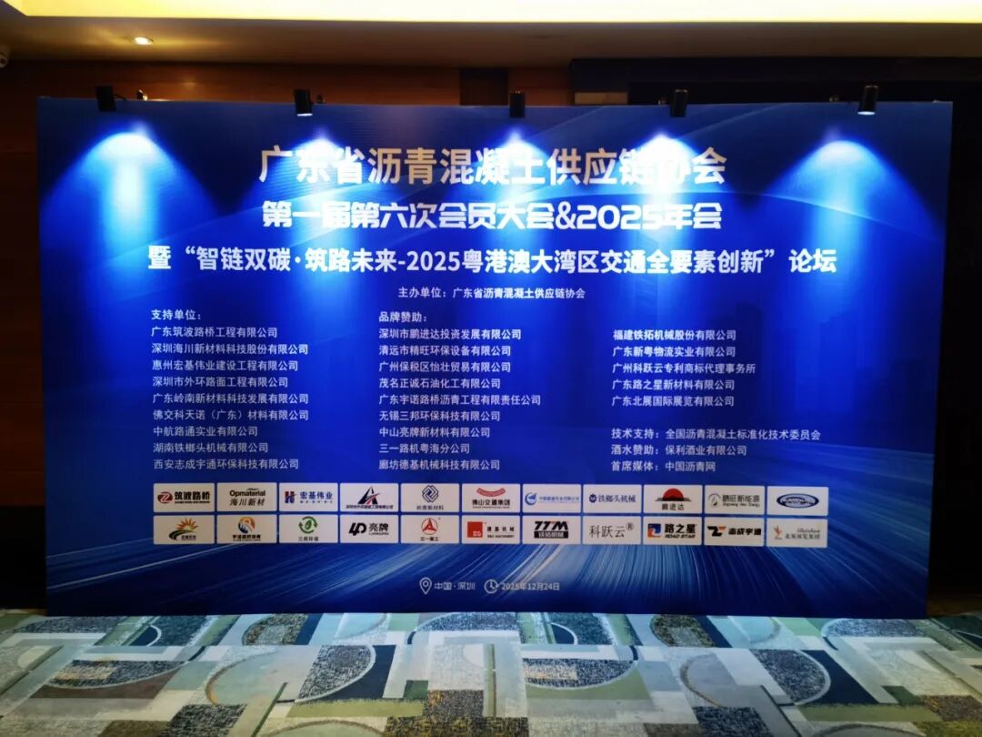 2025年12月24日,由广东省沥青混凝土供应链协会主办的第一届第六次会员大会暨2025年会,以及“智链双碳·筑路未来——2025粤港澳大湾区交通全要素创新”论坛在深圳隆重举行。