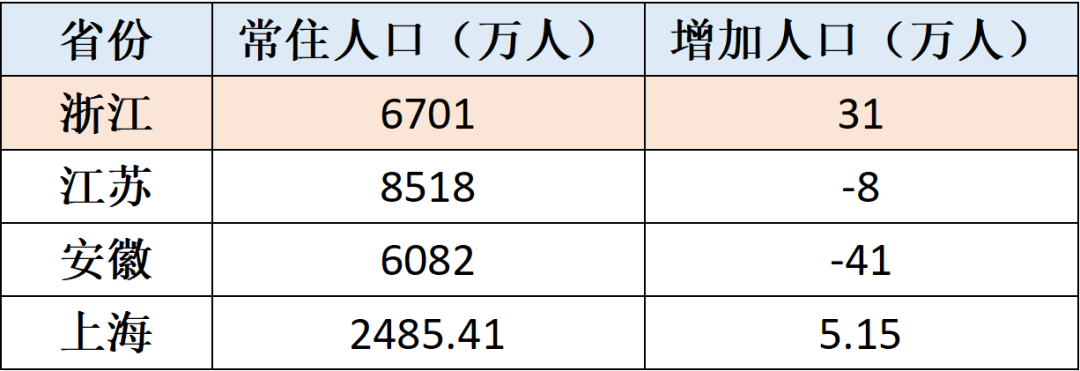 浙江增加31万人,展现出极强的人口虹吸能力;