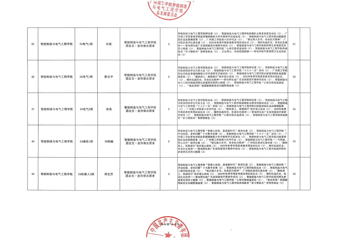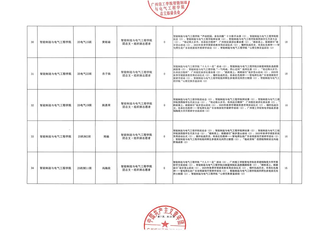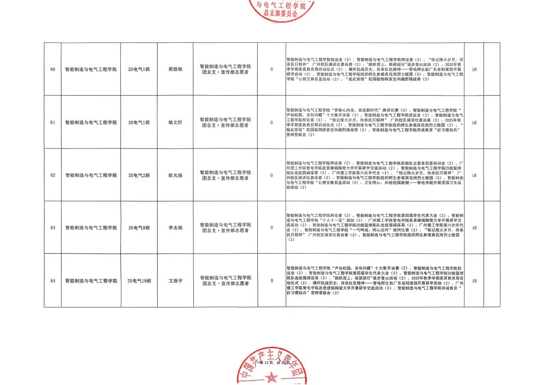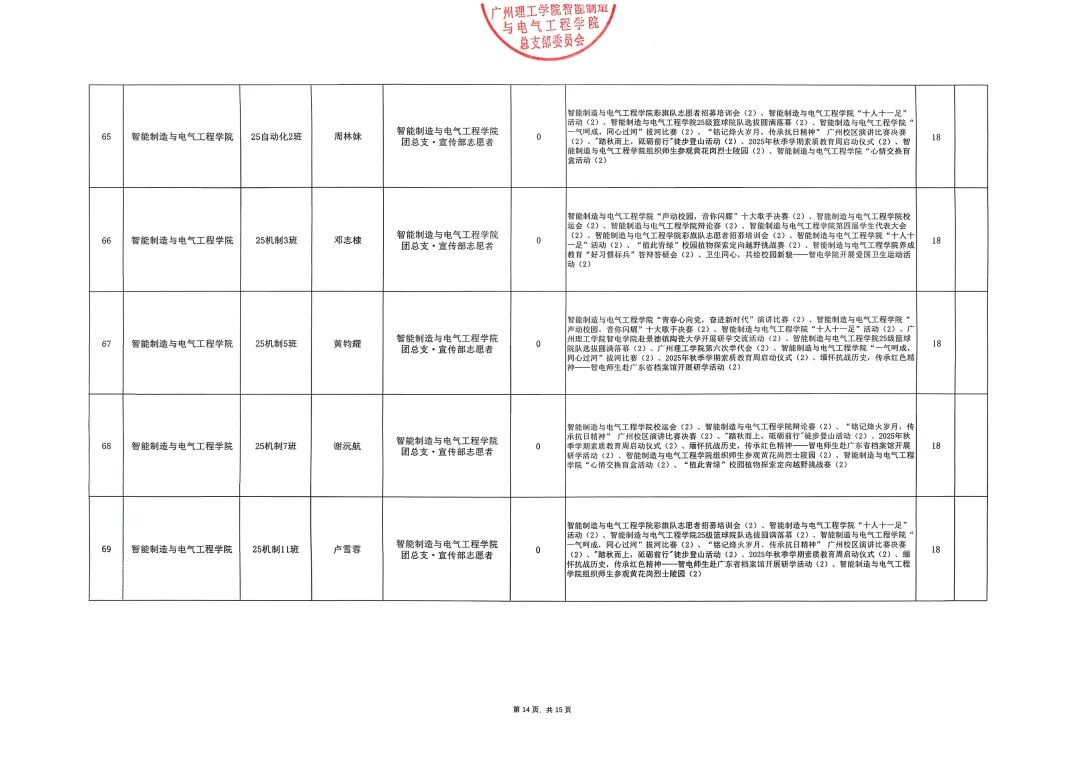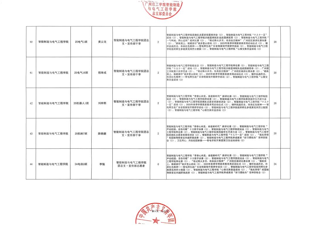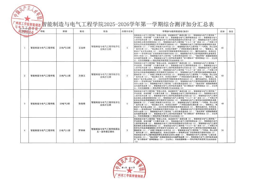 经个人申报、院团总支审核,2025-2026学年第一学期智能制造与电气工程学院团总支综合测评公示如下。公示时间为2026年1月19日-2026年1月21日。