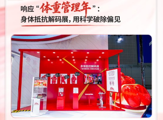 针对公共卫生挑战,礼来设两大互动区:“记忆咖啡馆”邀老年志愿者服务,结合艺术作品科普阿尔茨海默病,助力早诊(我国患者近1700万);“身体抵抗解码展”揭示减重“代谢适应”机制,打破减重认知误区(我国成人超重肥胖率50.7%)。