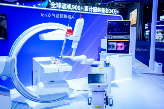 展品方面,直观复星携达芬奇手术机器人系列、Ion支气管镜机器人、SimNow2训练模拟器等亮相,形成“诊断+治疗+培训”全链条布局。其中,“中国智造”的达芬奇Xi手术系统已服务国内超81万人次;达芬奇SP手术系统进入创新药械审批“绿色通道”,已在澳门装机;Ion支气管镜机器人精准解决肺深部小结节诊疗难题,国内服务超300人次。多系统协同构建精准诊疗一体化方案,模拟器则为技术规范应用提供人才支撑。