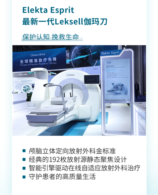 本届进博会,医科达实现全线产品在华本土化生产,重磅首发覆盖内外照射治疗的创新解决方案。核心展品包括:本土智造的最新一代Leksell伽玛刀Elekta Esprit,全球治疗数超200万例,中国累计治疗30万+患者;全新精准智能放疗平台Elekta Evo,以AI与超清影像引导提升放疗质效;精准近距离治疗系统Elekta Flexitron,安全精准且辐射漏射达标。标杆产品Elekta Unity高场强磁共振引导放疗系统,落地16家中国机构,惠及1万+患者,成功治疗40+种肿瘤。