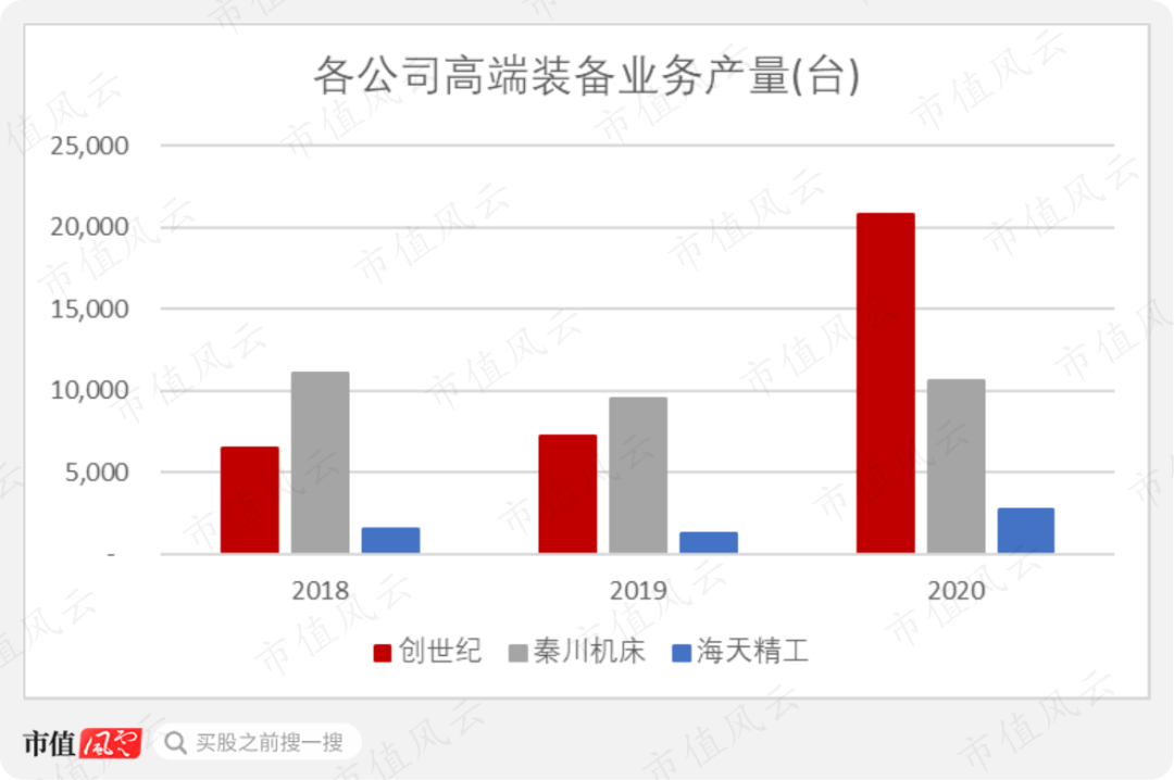 按照类似口径统计,2020年,海天精工数控机床产量约为创世纪的54.2%。