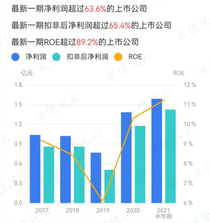 吾股大数据显示,海天精工2021年上半年的净利润,超过了63.6%的A股上市公司,扣非后净利润超过65.4%的上市公司。