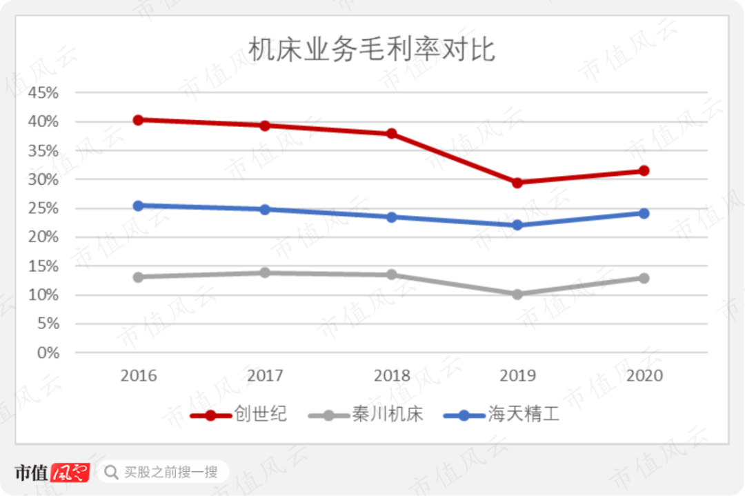 这也是与创世纪相比,海天精工在机床业务上的毛利率偏低的主要原因之一。
