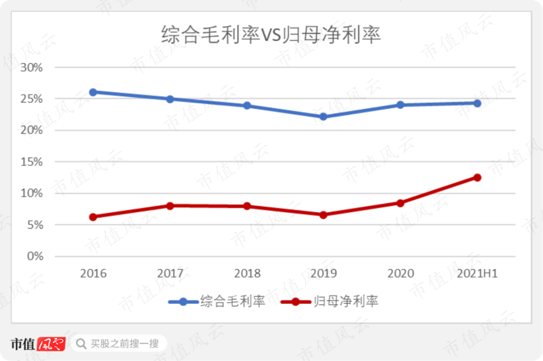 尽管对比竞争对手,海天精工的主营业务毛利率表现有所欠缺,但令风云君感到意外的是,2019年~2021年上半年,海天精工的归母净利率大幅提高。