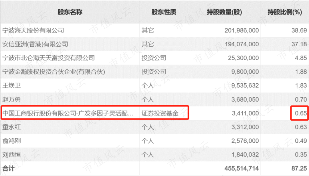 同期,海天精工的前十大股东中,除广发混合基金外都是其实际控制人、公司高管和持股员工。