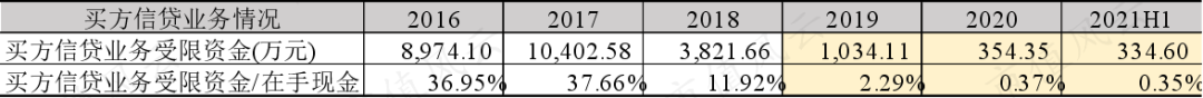 2016年~2020年期间,海天精工因提供买方信贷业务受限的现金,与该部分受限资金占在手现金的比率,都有显著下降。