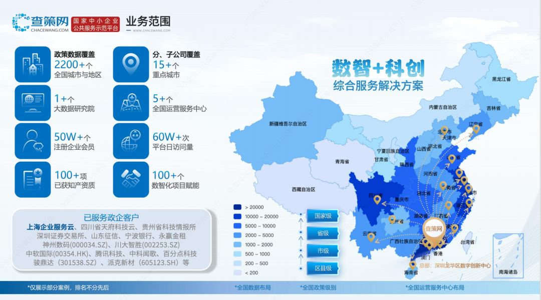 查策网依托自研AI核心技术,对全国2200余个城市与地区的政策数据进行全量聚合治理,构建覆盖更广、更新更快的结构化政策大数据底座。平台注册企业会员近50万+家,通过ISO标准规范化数据治理流程,实现政策匹配效率提升30%、误报率显著降低。延续 “输入企业名称,1秒匹配政策” 的智能体验,为政府、园区、企服机构及中小企业提供全量权威的政策数据与精准对接服务,让惠企政策直达快享。