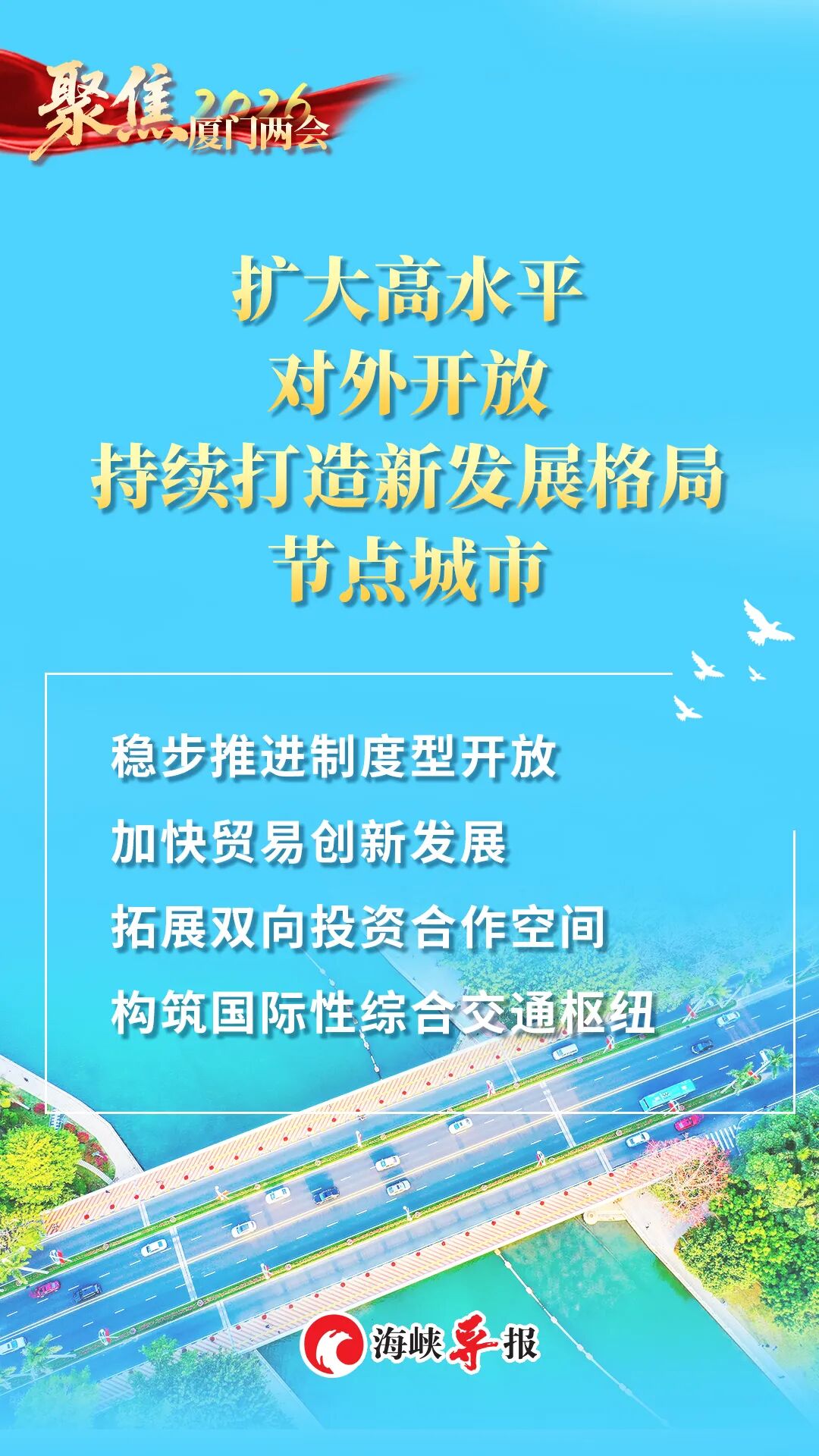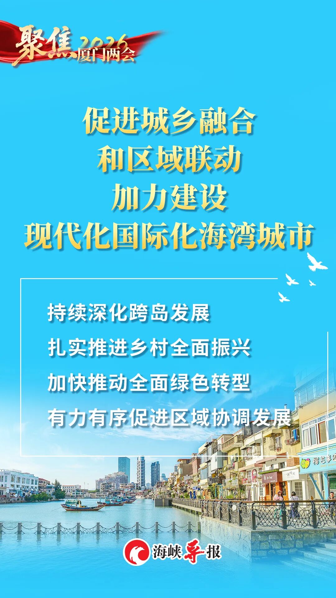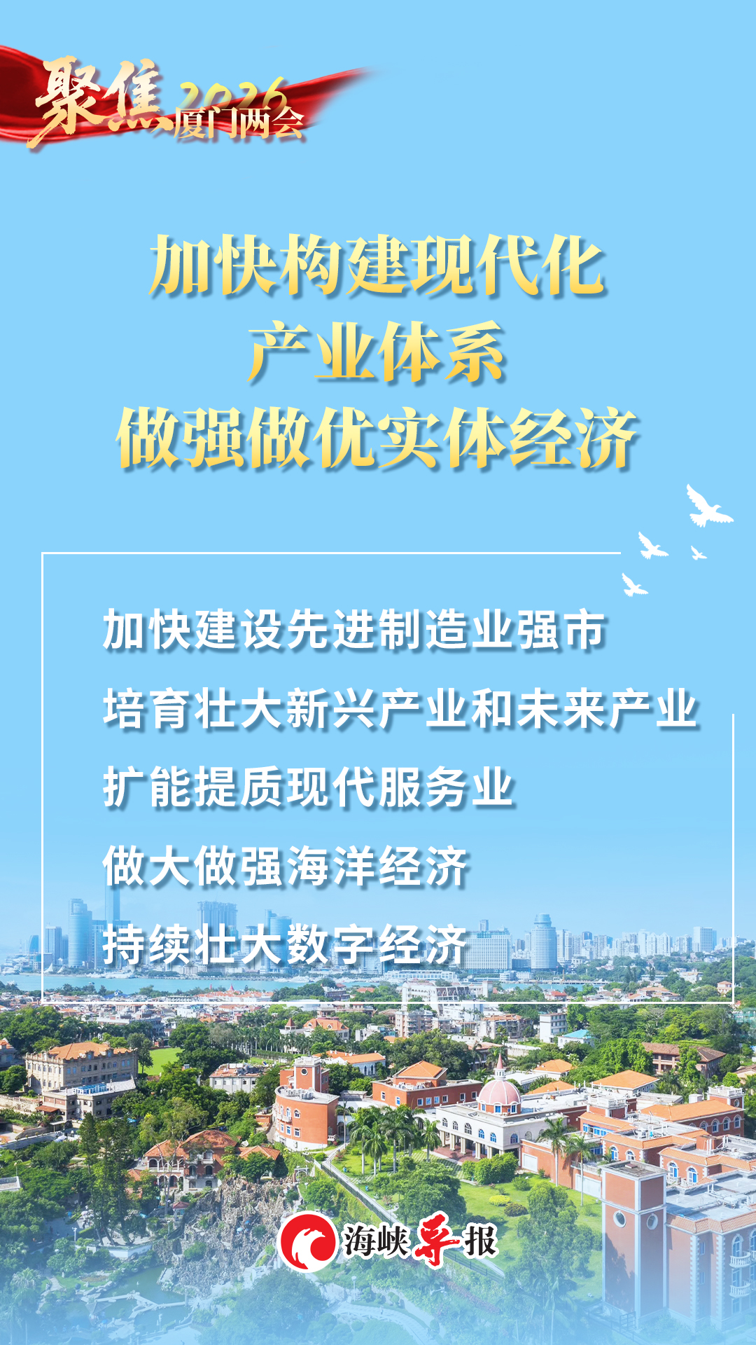 2026年是“十五五”开局之年。今年的政府工作报告,既交出了一份亮点纷呈的“2025年厦门答卷”,也锚定2026年发展方向明确了重点目标,以实干担当凝聚全市合力,全力推动“十五五”开好局起好步,奋力在中国式现代化建设的浪潮中书写厦门新篇章。