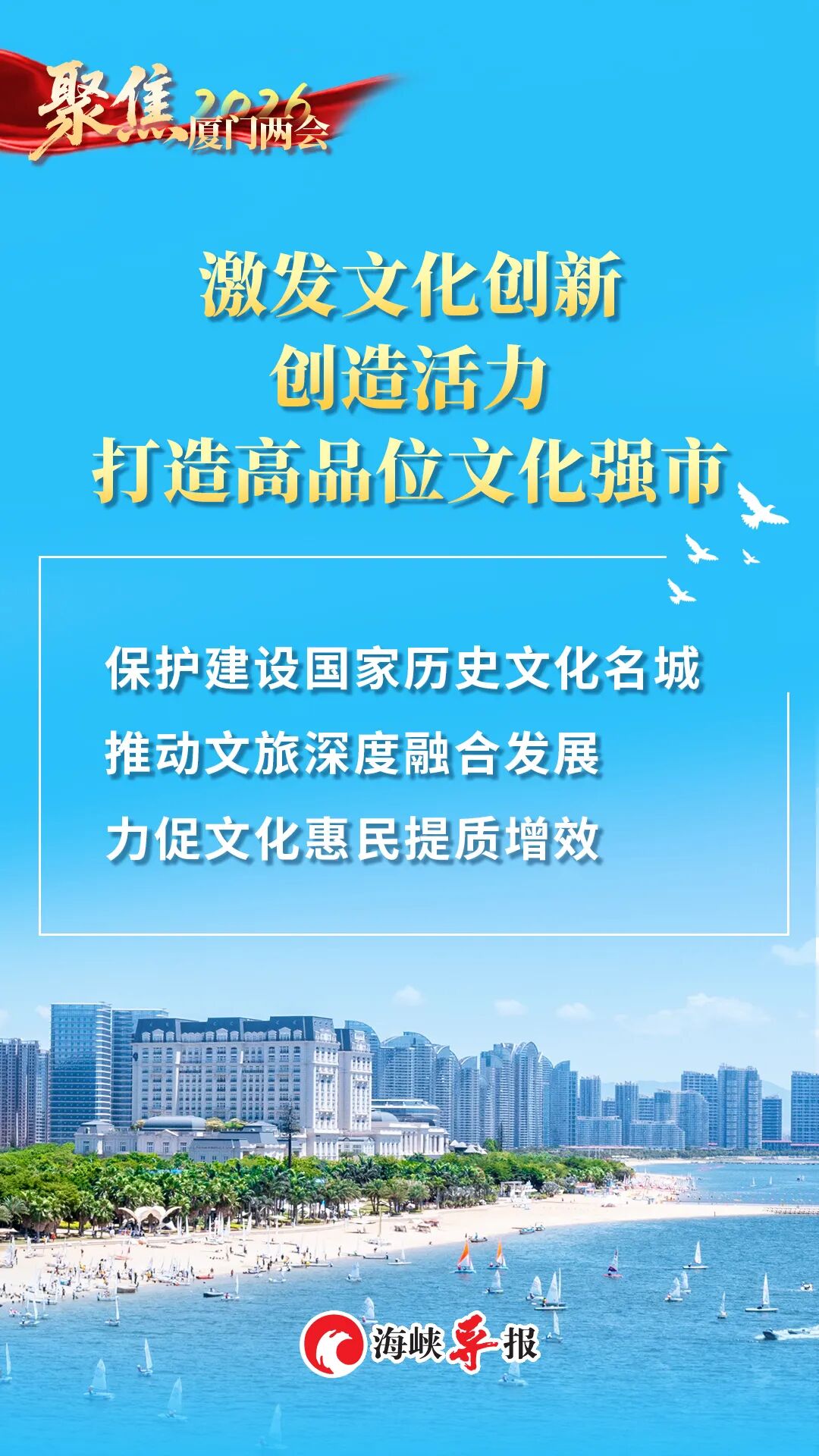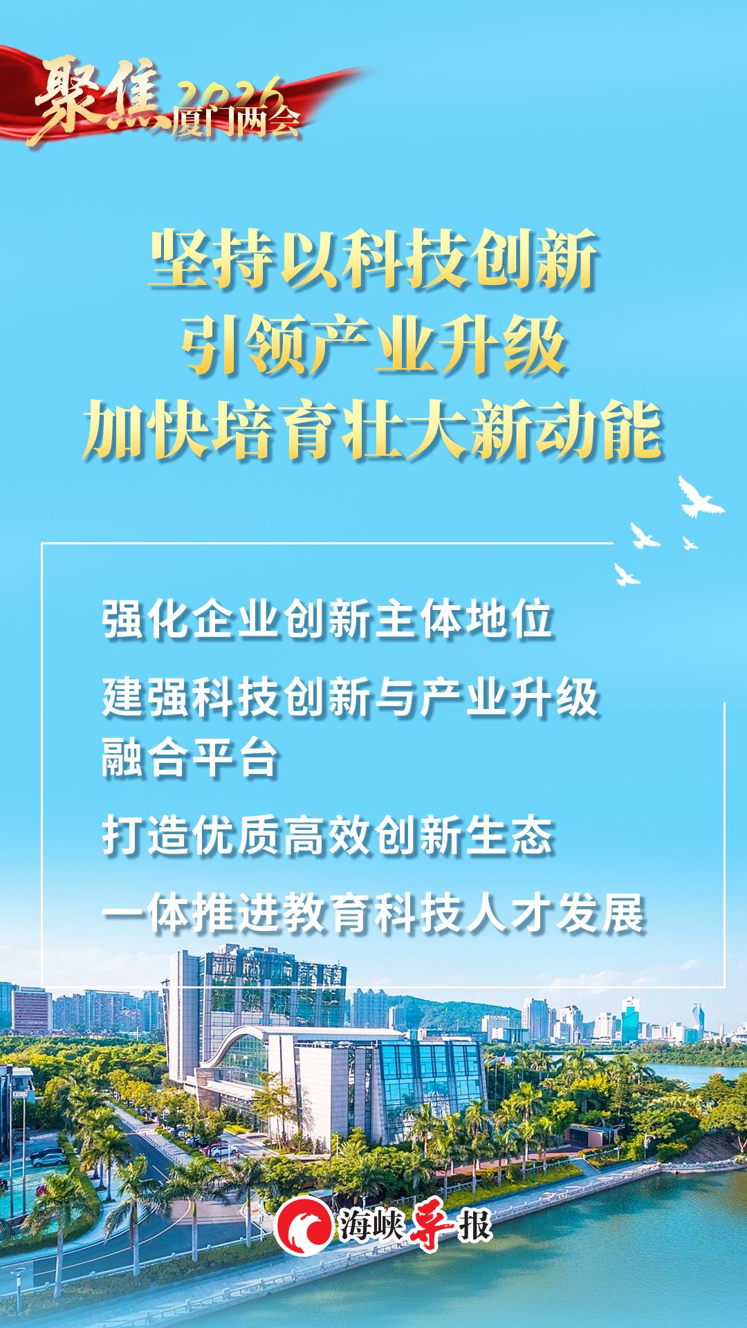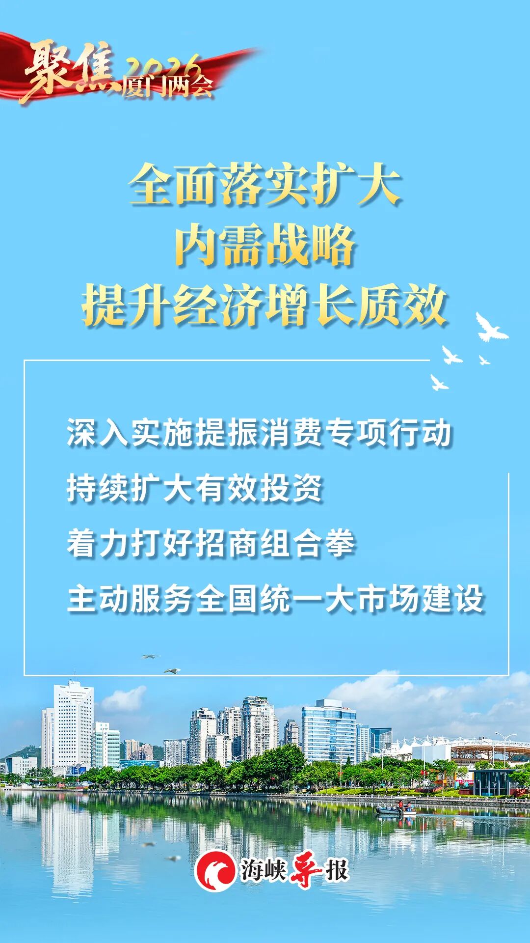 2026年是“十五五”开局之年。今年的政府工作报告,既交出了一份亮点纷呈的“2025年厦门答卷”,也锚定2026年发展方向明确了重点目标,以实干担当凝聚全市合力,全力推动“十五五”开好局起好步,奋力在中国式现代化建设的浪潮中书写厦门新篇章。