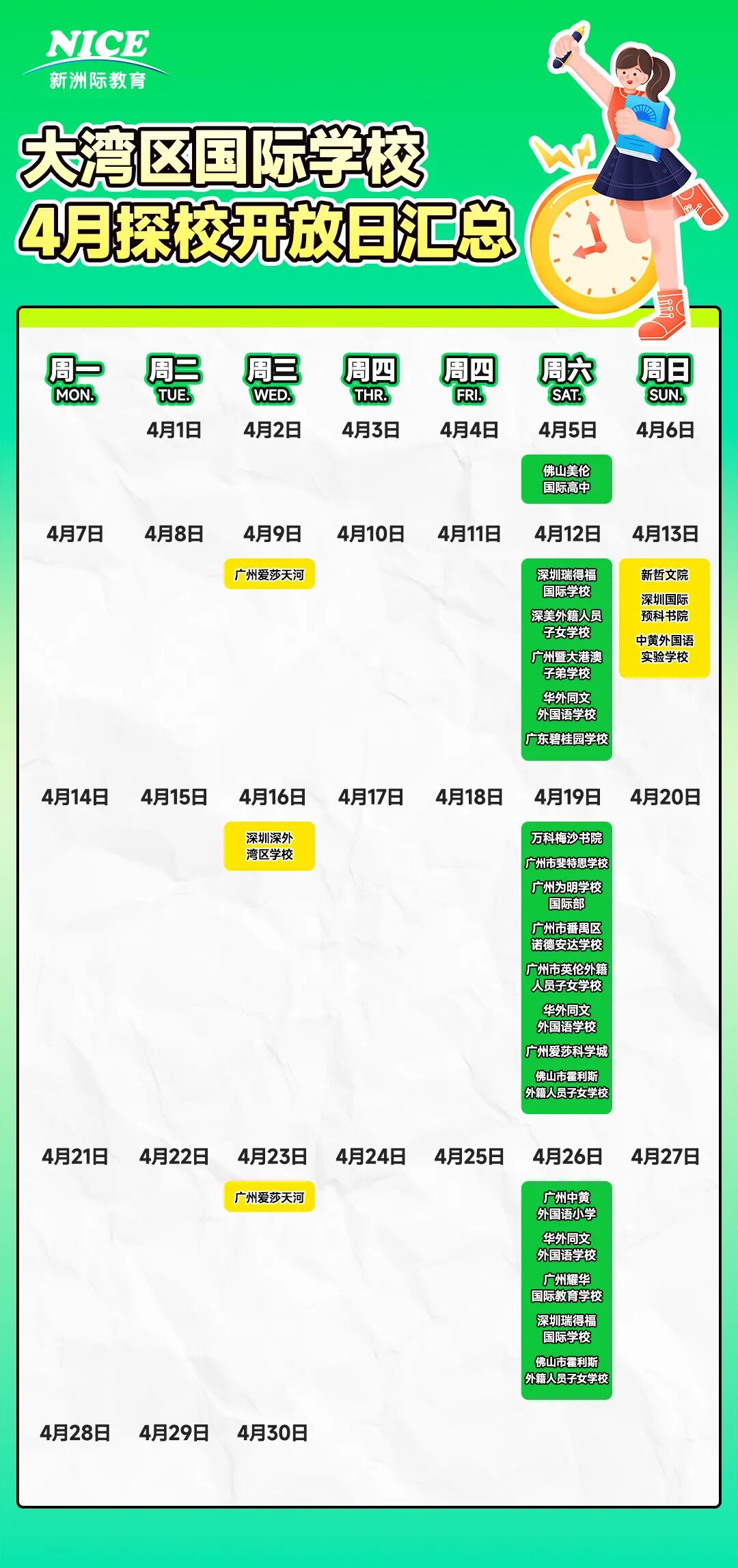 就跟着小新一起来了解4月广东国际学校的开放日安排吧~