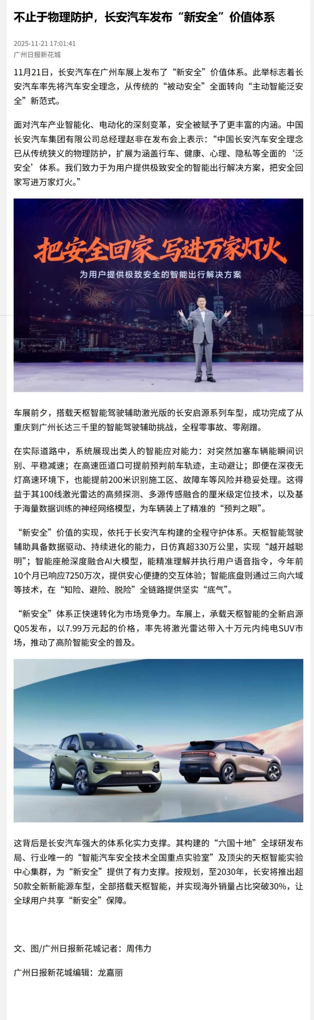 不止于物理防护,长安汽车发布“新安全”价值体系
