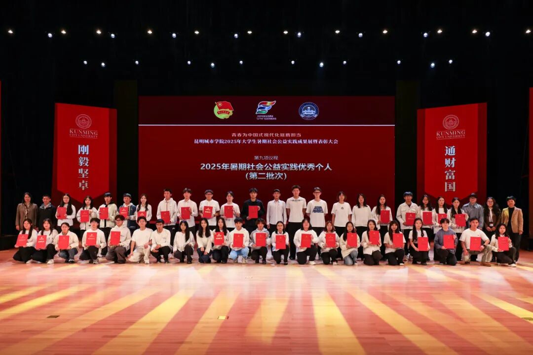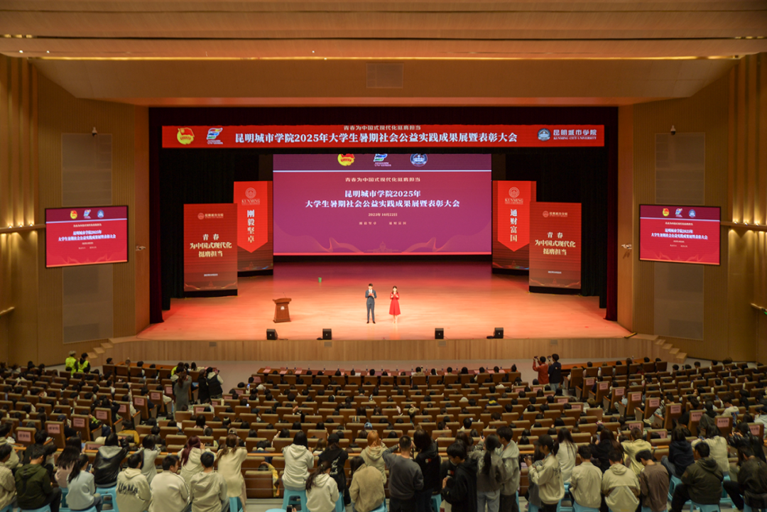 10月22日,昆明城市学院2025年大学生暑期社会公益实践成果展暨表彰大会在杨林校区博雅会堂隆重举行。校领导王昆来、俞竹青,党委宣传部、党委学生工作部、校团委负责人,各二级学院党委(党总支)书记、团委(团总支)书记、杨林校区辅导员、实践团队全体成员、受表彰师生、各学院学生代表参加此次活动。
