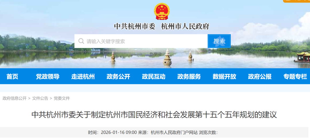 1月16日,浙江省杭州市人民政府发布《中共杭州市委关于制定杭州市国民经济和社会发展第十五个五年规划的建议》,规划建议提出,“十五五”期间,高水平建设新型能源体系。合理开发利用可再生能源,推进“光伏+”多元融合场景,支持生物质能、氢能、热泵、地热能等多样化能源开发利用,完善新型储能体系,加力引入外来绿电,加快构建清洁低碳、安全可靠、高效节能的新型能源体系。加强化石能源清洁高效利用。提高终端用能电气化水平,推动能源消费绿色化低碳化。探索大型赛事展会、演出活动全绿电供应。