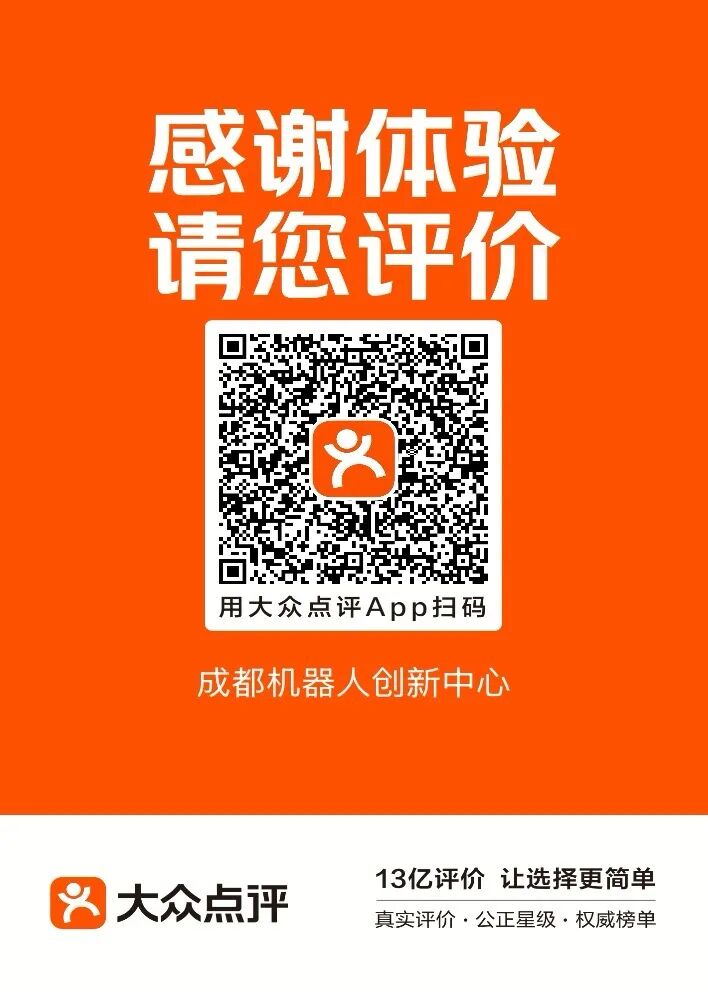 了解成都机器人创新中心更多产品请于美团/大众点评搜索“成都机器人创新中心”或长按识别下方二维码:
